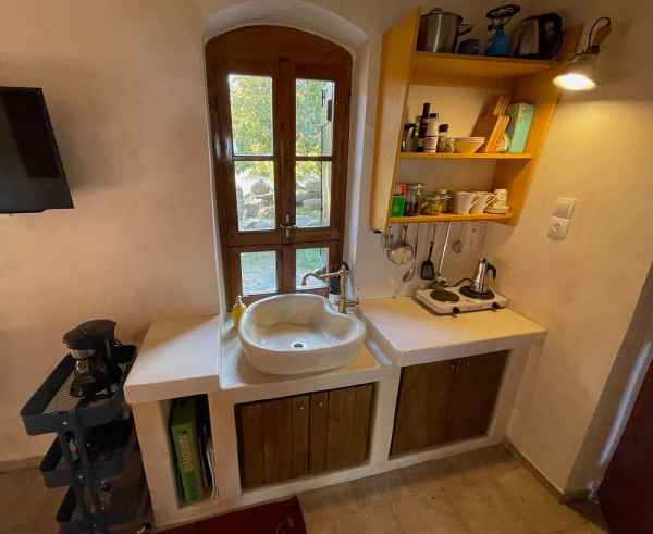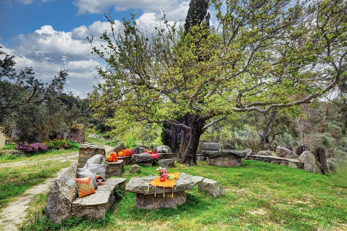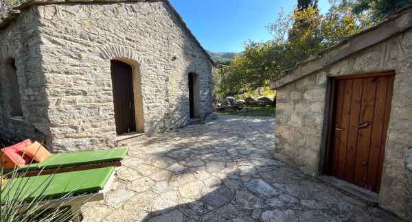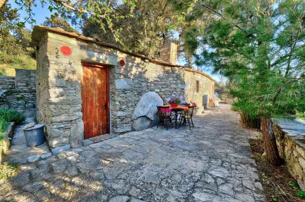 On the property there are two authentic Ikarian stone houses, an outdoor kitchen, a workshop, a root cellar, and a chicken coop. Everything is spread out over a large piece of land with organic vegetable and herb gardens, olive groves, an orchard and a vineyard. This ensures privacy and serenity.