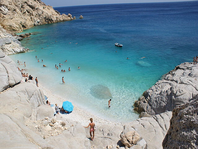 Ikaria is also listed as a “Blue zone”, one of the few regions of the world where inhabitants tend to live longer and healthier than average. The island has a rich variety of nature: sandy beaches, rocky mountains, forests, spectacular rock formations, lunar landscapes, waterfalls, and natural hot springs.